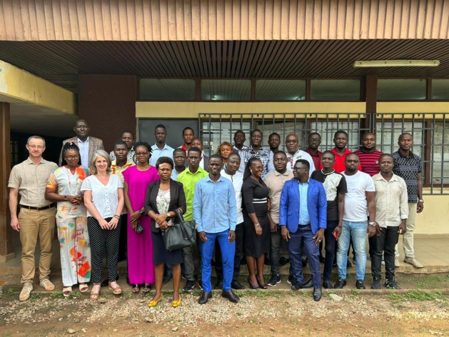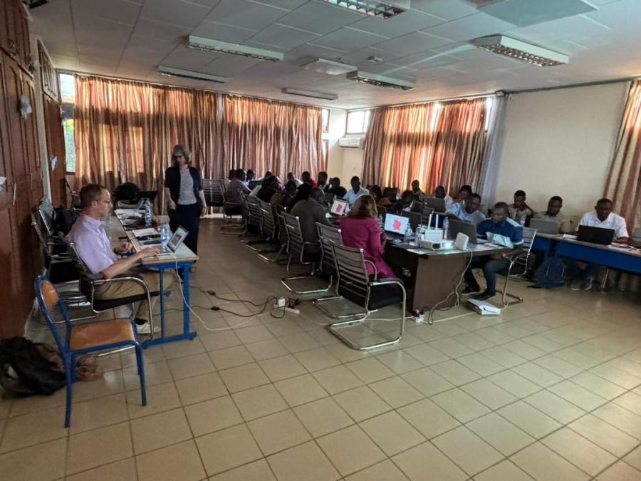 Avec le soutien de l’IRD, du LMI Minerwa, de l’UMR PRODIG, du laboratoire VST et du laboratoire CURAT, l’école de formation à la recherche « Outils d’analyse de données spatiales en Sciences Humaines et Sociales pour l’étude des territoires » en Côte d’Ivoire s’est tenue sur le Campus de l’Université Alassane Ouatara (Bouaké) du 10 au 14 juin 2023. Elle était destinée à renforcer les capacités d’analyse et de recherche dans les domaines de la géomatique appliqués à l’étude des territoires et de leurs ressources de 19 doctorant.es. et de 5 jeunes enseignant.es.-chercheur.se.s, géographes de plusieurs universités ivoiriennes (Abidjan, Bouaké, Korhogo, Daloa). Les formateurs venaient d’horizons différents : Stéphane Yéboué Koffi (université de Korhogo – laboratoire VST), Pauline Gluski (IRD – UMR PRODIG), Géraud Magrin (Université Paris 1 Panthéon Sorbonne-UMR PRODIG), Hyppolite N’Da Diby (Université Félix Houphouët-Boigny – CURAT), Marc Ta Yonan (université Félix Houphouët-Boigny CURAT). Les sessions de formation se sont déroulées sur 5 jours, mêlant cours théoriques, exercices pratiques en télédétection, SIG et cartographie ainsi qu’une sortie de terrain sur des sites d’orpaillages artisanaux autour du lac de Kossou.