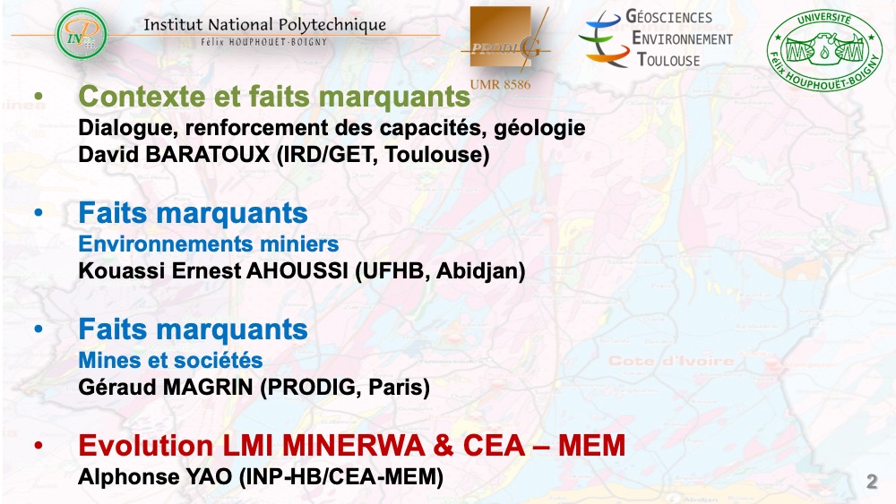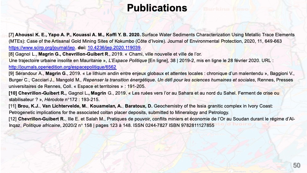 Cette page présente les activités en cours du Laboratoire Mixte International pour une Activité Minière Responsable en Afrique de l’Ouest. La diaporama ci-dessous résumé les activités menées sur la période 2019 – 2020.